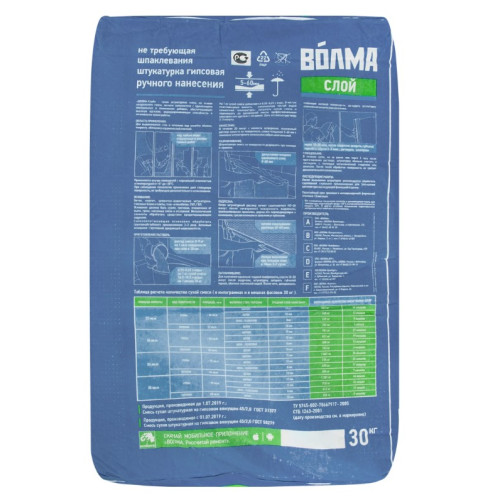 Штукатурка гипсовая Волма Слой 30 кг