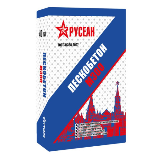 Пескобетон Русеан предназначен для устройства высокопрочных износостойких полов, в качестве несущего слоя в жилых, офисных, торговых, производственных помещениях, обустройства ленточного фундамента в малоэтажном строительстве, создание отмосток, отливок, производства монтажных работ. Для ручного нанесения внутри и снаружи зданий.